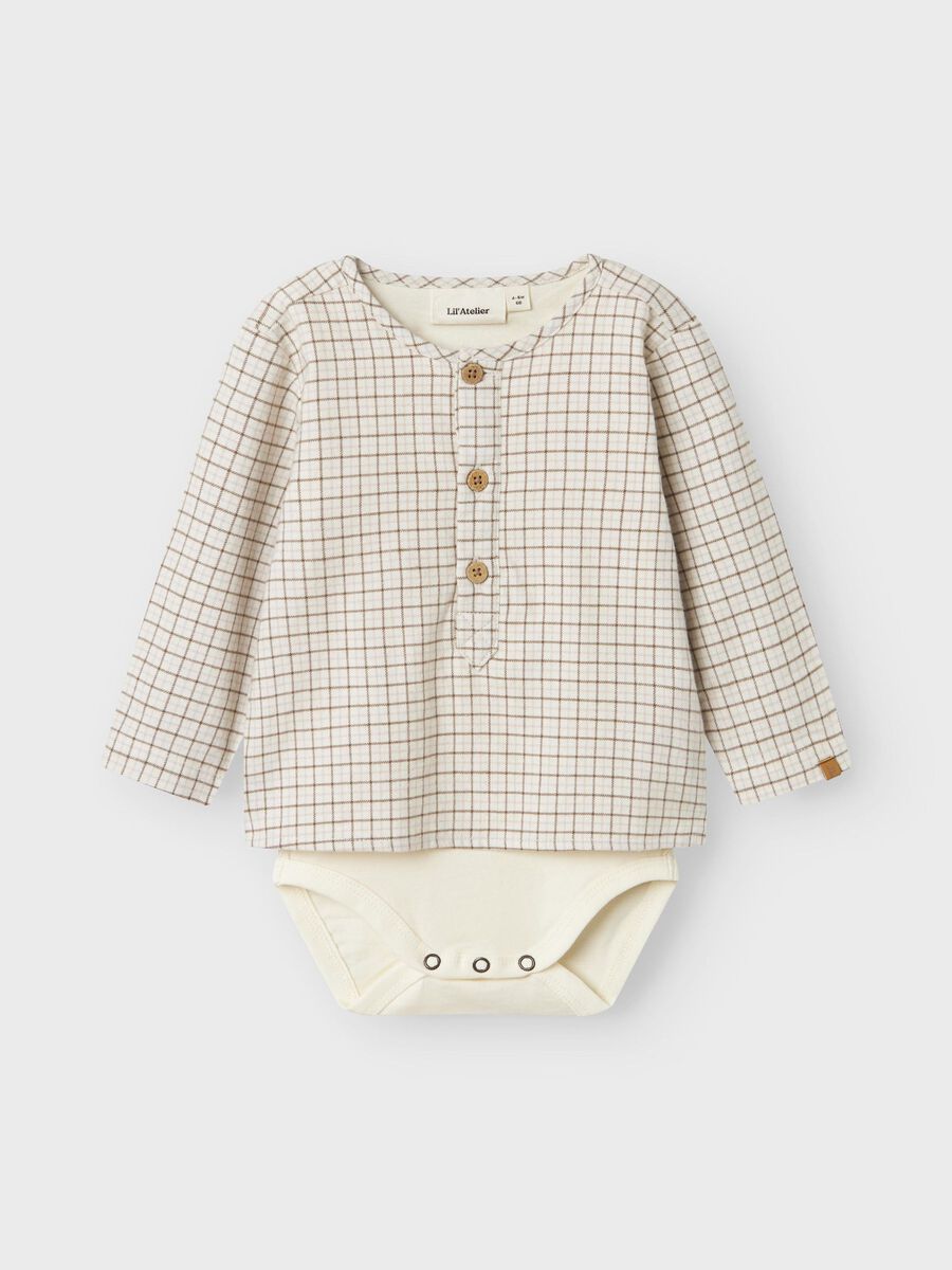 - Produktart: Shirtbody - Verschluss : Knopfverschluss - Verschluss : Druckknopfverschluss - Ausschnitt : Grandad-Kragen - Ärmel : Lange Ärmel - Weitere Details: Label - Passform : Loose Fit, aus 98% Bio-Baumwolle und 2% Elasthan