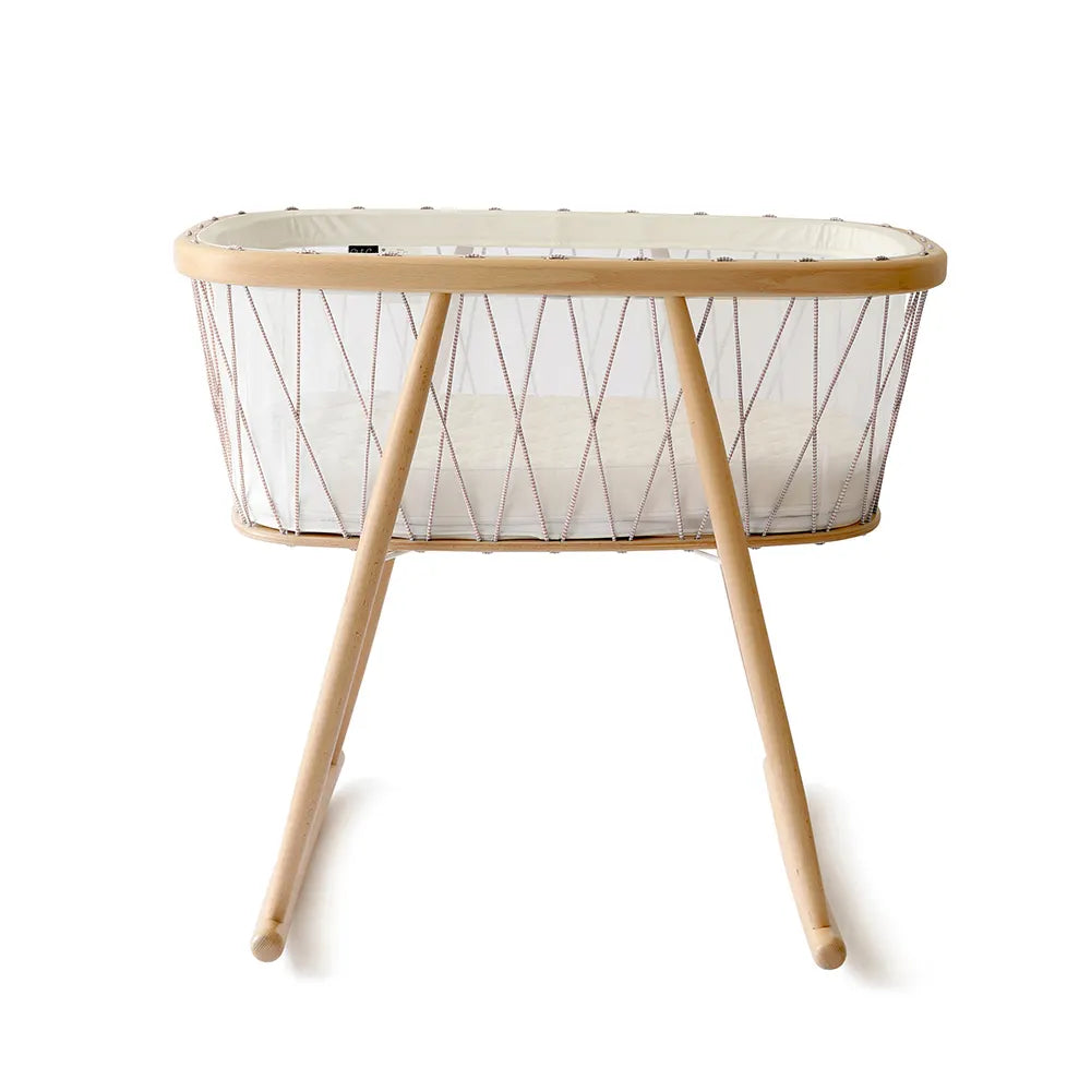 Seine minimalistischen Linien und die farbenfrohen Schnürsenkel verleihen ihm einen ausgesprochen modernen Look. Die Schnürsenkel sorgen nicht nur für Leichtigkeit, sondern sind auch sicherer als Stangen, zwischen denen das Baby mit einem Bein oder Arm stecken bleiben könnte. Beim Zusammenbau binden die werdenden Eltern die Schnüre selbst. Eine Geste mit hohem emotionalen Wert, denn es geht darum, beim Bau des Nestes ihres Kleinen mitzuwirken!