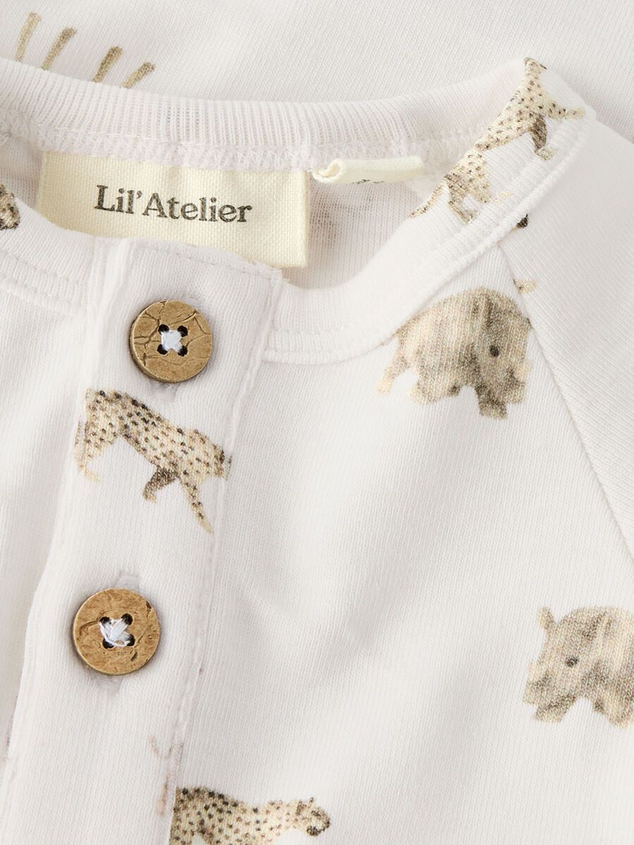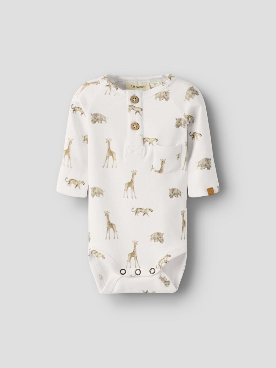 - Produktart: Body - Taschen: Brusttasche - Verschluss: Knopfverschluss - Verschluss: Druckknopfverschluss im Schritt - Print: All-over-Print - Ausschnitt: Rundhalsausschnitt - Ärmel: Lange Ärmel - Weitere Details: Label - Stoff: Jersey