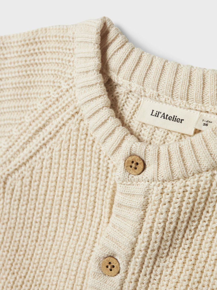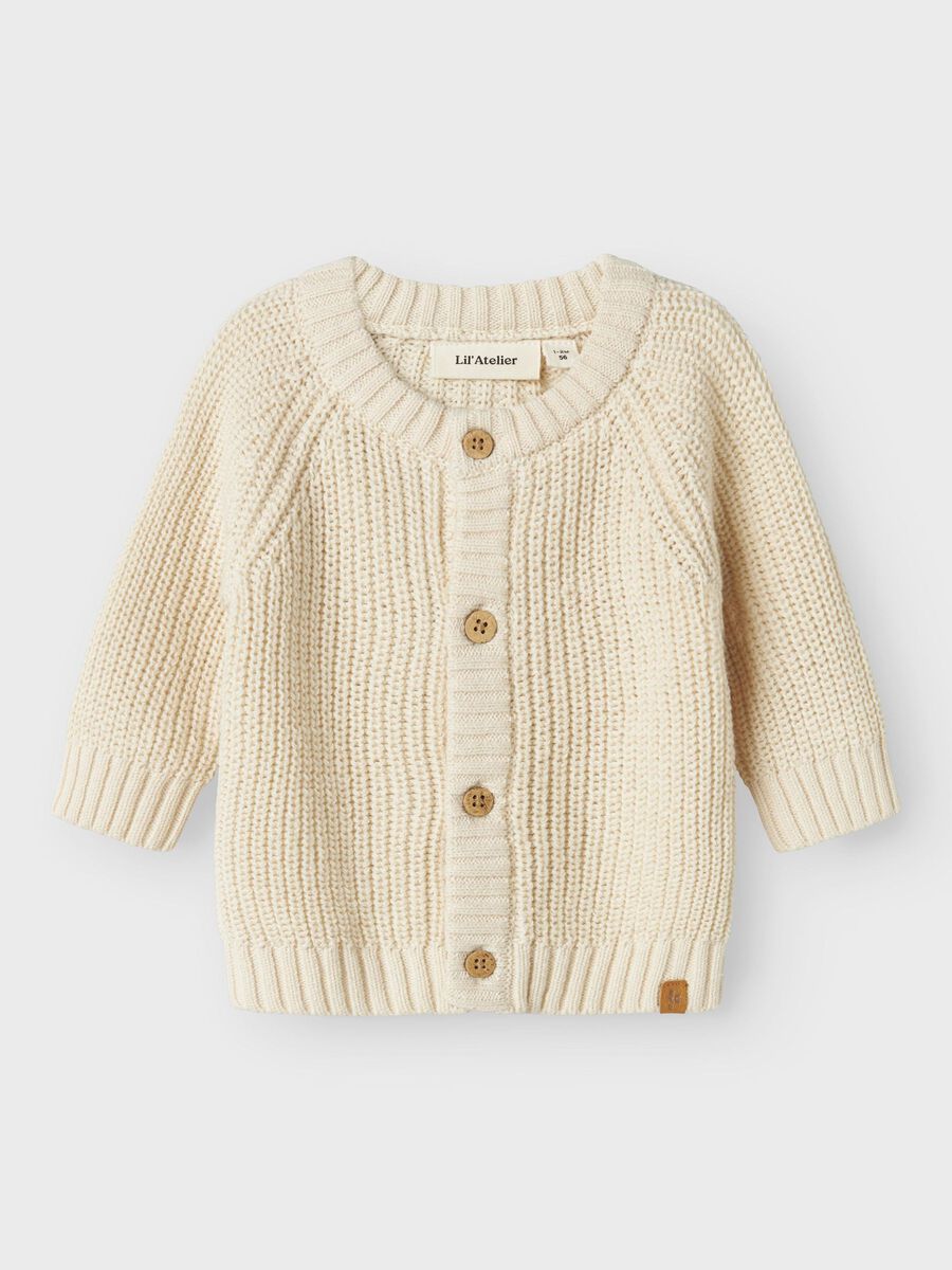 - Produktart: Gestrickter Cardigan - Verschluss: Knopfverschluss - Ausschnitt: Rundhalsausschnitt - Ärmel: Lange Ärmel - Ärmelbündchen: Gerippte Ärmelbündchen - Weitere Details: Label