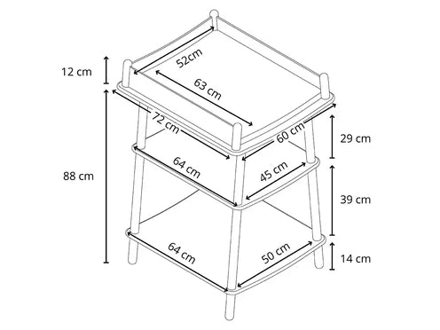 Reinigen Sie den Wickeltisch aus Holz mit einem feuchten Schwamm und wischen Sie ihn anschließend mit einem sauberen, trockenen und weichen Tuch ab. Verwenden Sie niemals Lösungsmittel, Verdünner, Alkohol, Scheuermittel usw.